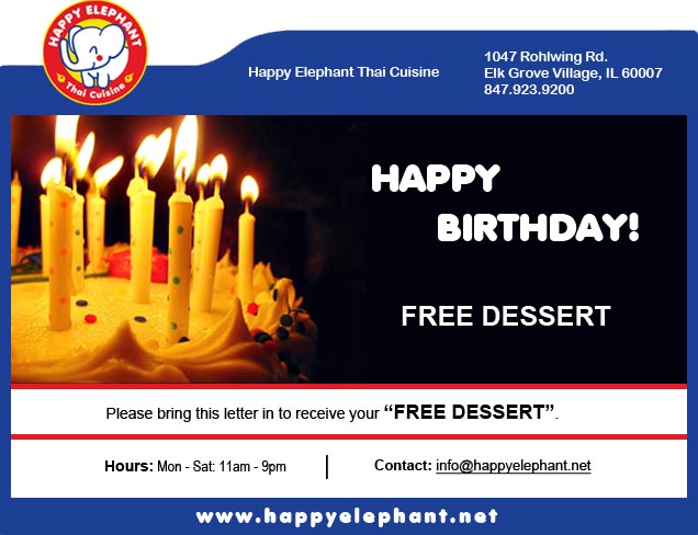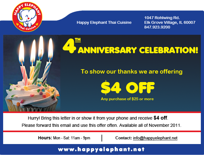 Includes promotions for customer birthdays and anniversaries. Seasonal promotions and special occasions such as their 4 Year Anniversary.
