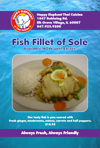 L to R - Halloween Specials, B&W Ad, Catering Menu, Shirt Flyer, Take Out Menu, Sole Fish Flyer.